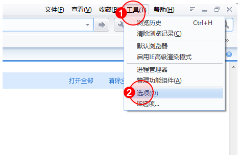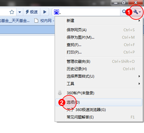 1.點擊瀏覽器左上角工具按鈕,選擇"設置",首選項。