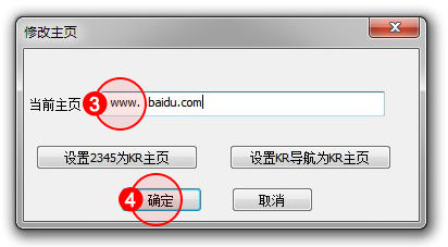 2.在輸入框內(nèi)輸入"www.ningfcw.cn" ,點擊確定,設置成功。