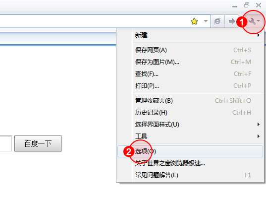 1.點擊瀏覽器右上角工具按鈕,選擇"選項"。
